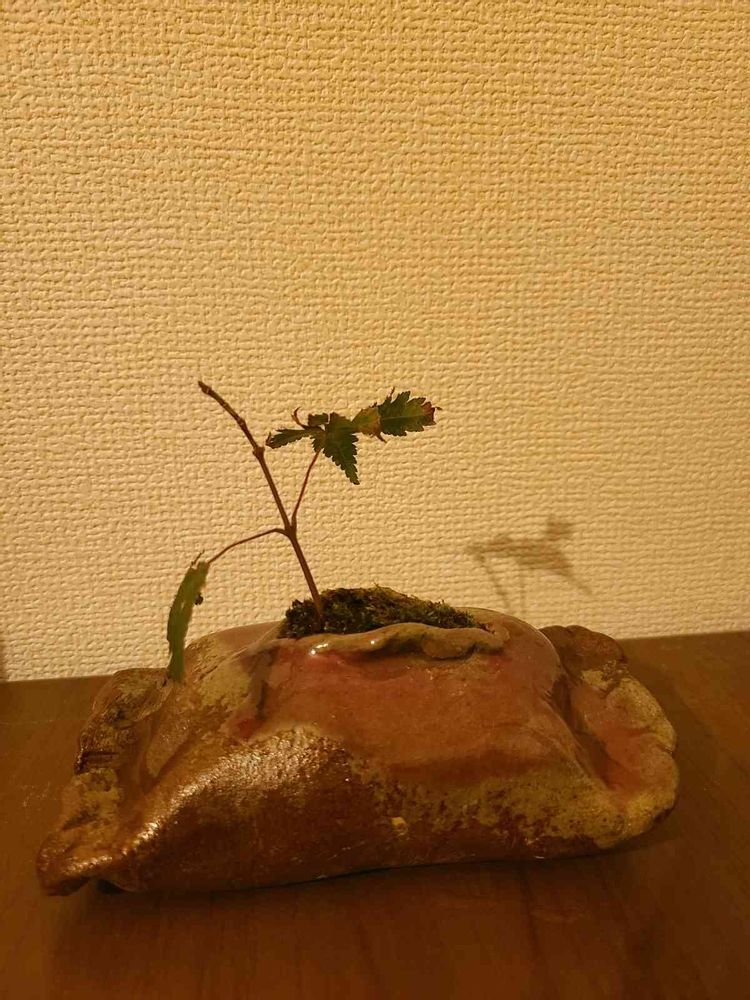 実家から貰った根のある紅葉の枝を苔と合わせて盆栽風にしてみました。せめて秋だけでも一緒に過ごしたいな~😋