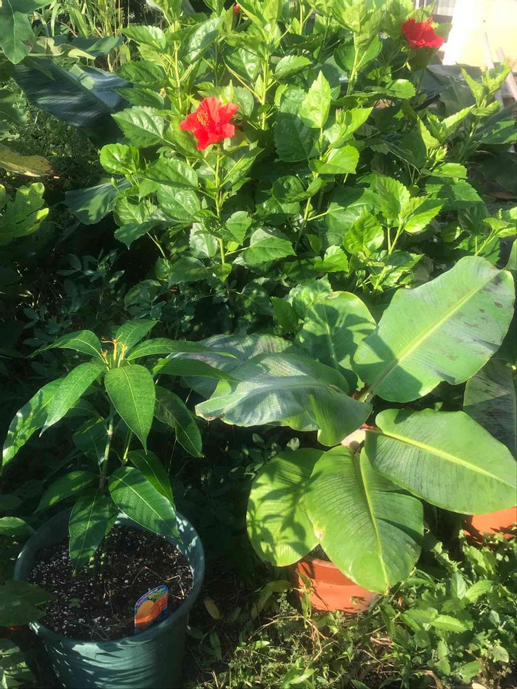 今朝は、バナナ、マンゴー鉢植えした物です。