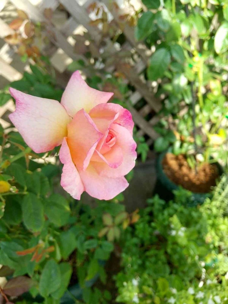 秋薔薇一番目グルスアンアーヘン。一年目からたくさんつぼみをつけてるけど、全部咲かすか悩む。