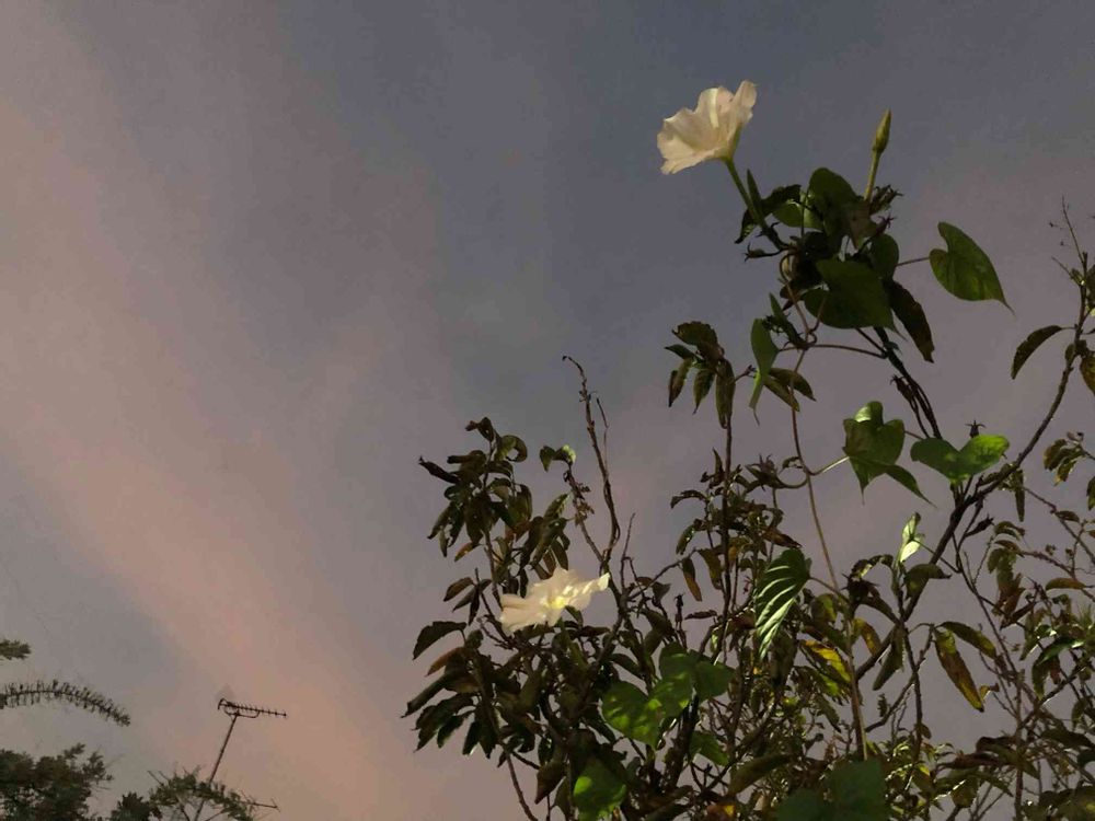 今年は咲かないのかな、と思ってた夕顔が、桜の木のてっぺんで咲いてました👏