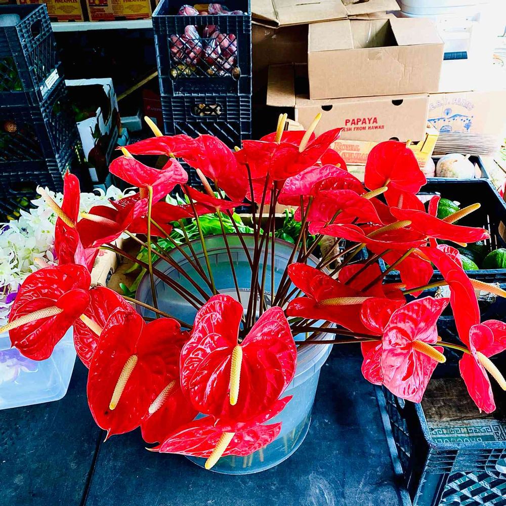 フルーツスタンドで無造作に売られていたアンスリウム❤️