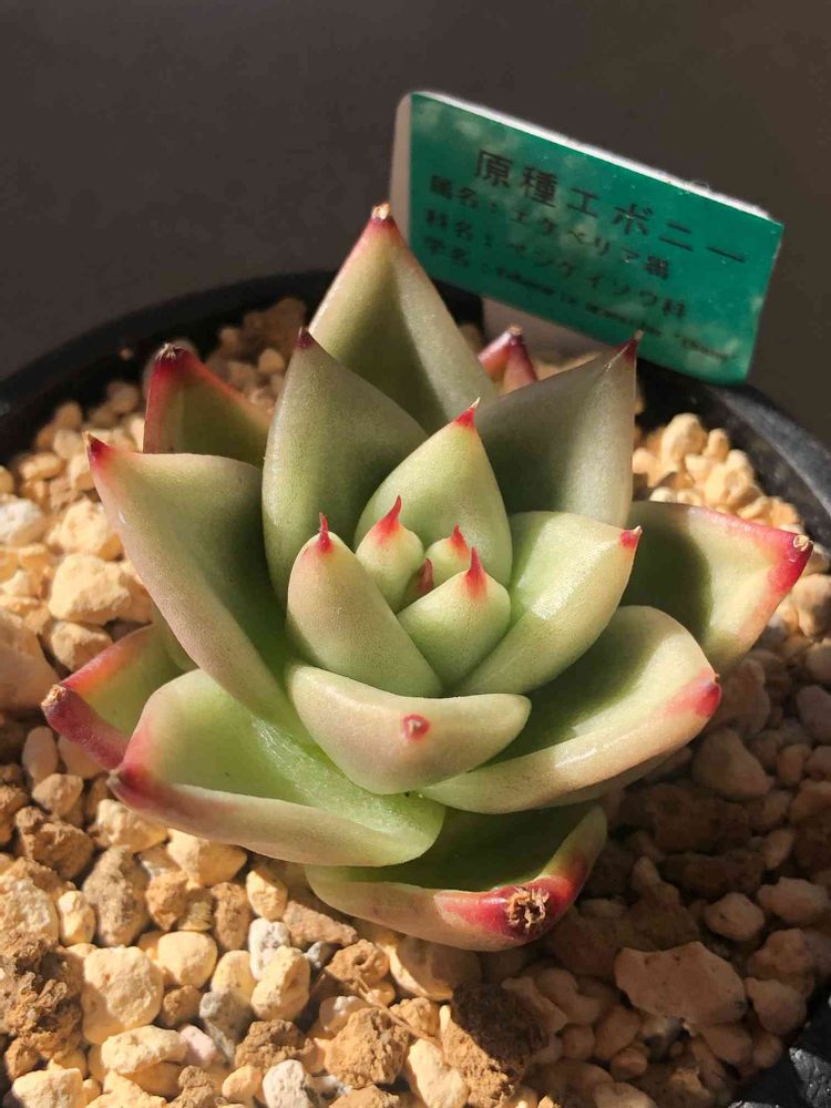 確か6月頃にお迎えした子。エボニーって葉の縁がもっと赤くならないですか⁉️特等席にいるのに😅💦