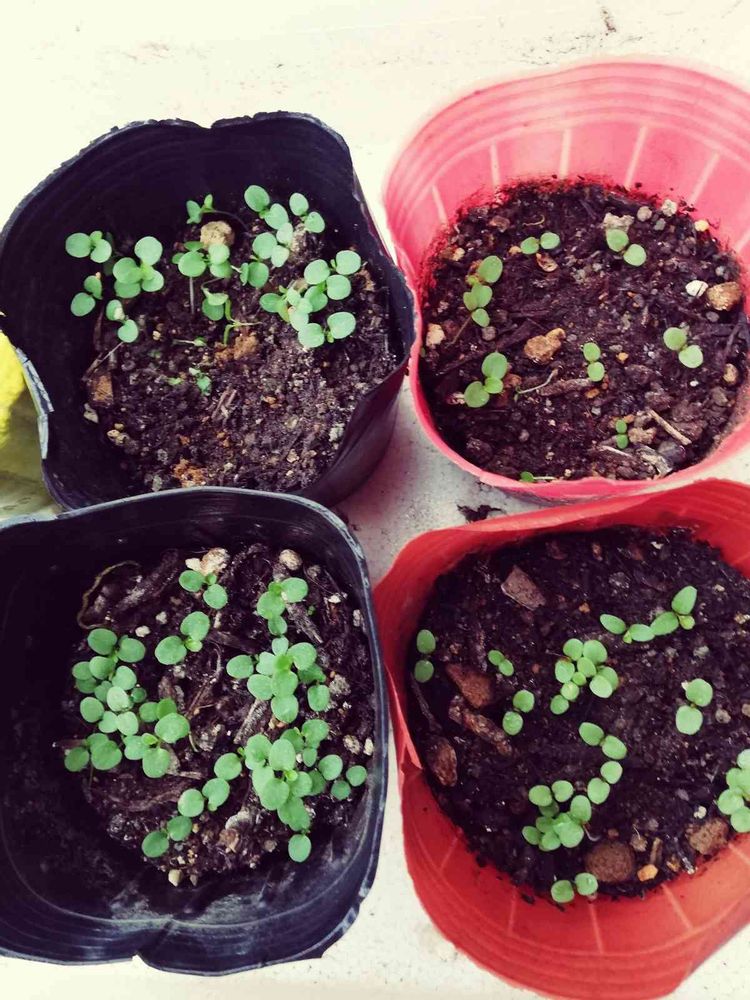 種蒔きして1ヵ月、沢山の可愛い🌱が…と大喜びして、写真撮りました。
