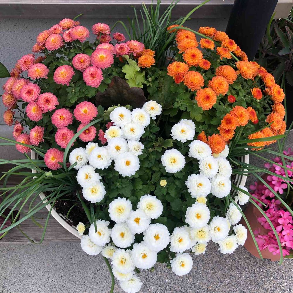 えめらるどさんの投稿を見ながら、この色はこの株かな?と吟味して、白、オレンジ、コーラルの3色お迎え💕大きめの鉢に寄せ植えしました🪴