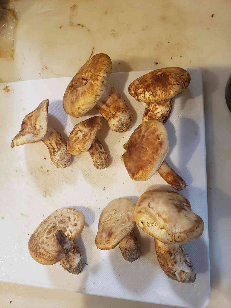 この白いヤツはシロマツタケモドキッぽい。味は中々美味しかったけど、モドキなだけあってマツタケの匂いがあんましない。束の先端が少し尖ってるのが外見的な特徴らしい。