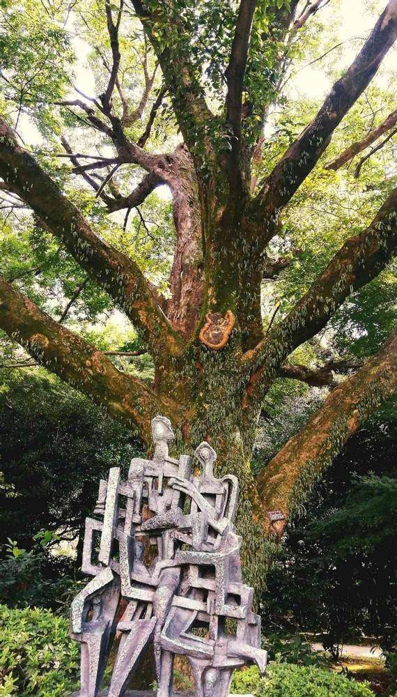 近所の庭園にあるO.ザッキンの1963年彫塑作品《La Demeure: 住処 》と老樹の榎木で、おはようございます...♪*゚