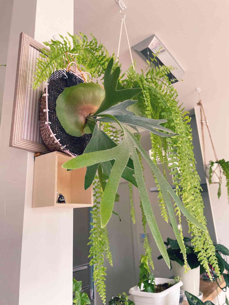 百均のカゴと鉢底ネットと結束バンドでも元気に育ってくれてるコウモリラン🦌✨