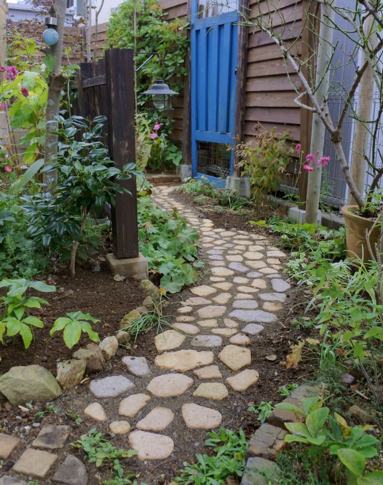 以前はウッドデッキを壊したときの大量の廃材を並べて木の小道にしてたんですが、ほどよく腐ったので廃棄してこちらに交換しました。
