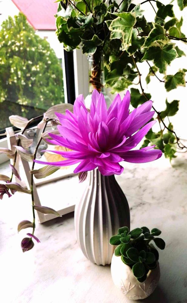 茎が切れかかっていたのでお花は花瓶に挿しました👍