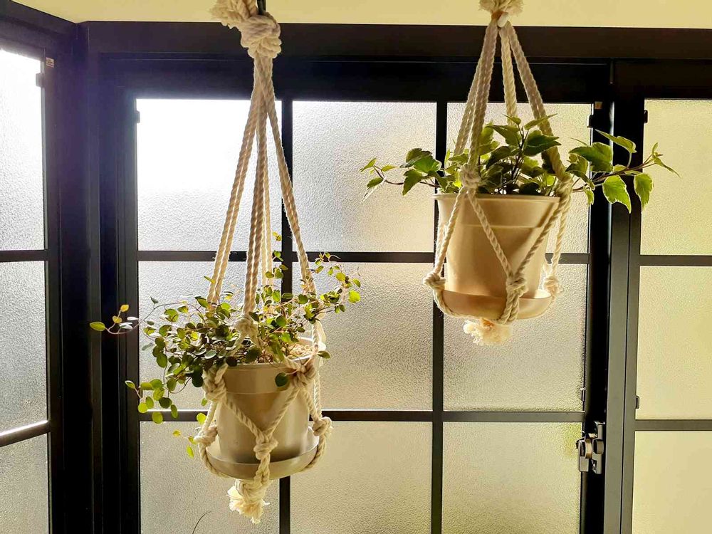 100均で買ったロープと鉢でハンギングプランター作ってみました。