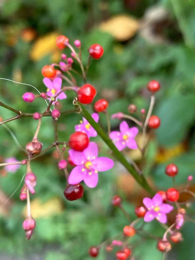 可愛いピンク色のお花🌸と赤い実🔴