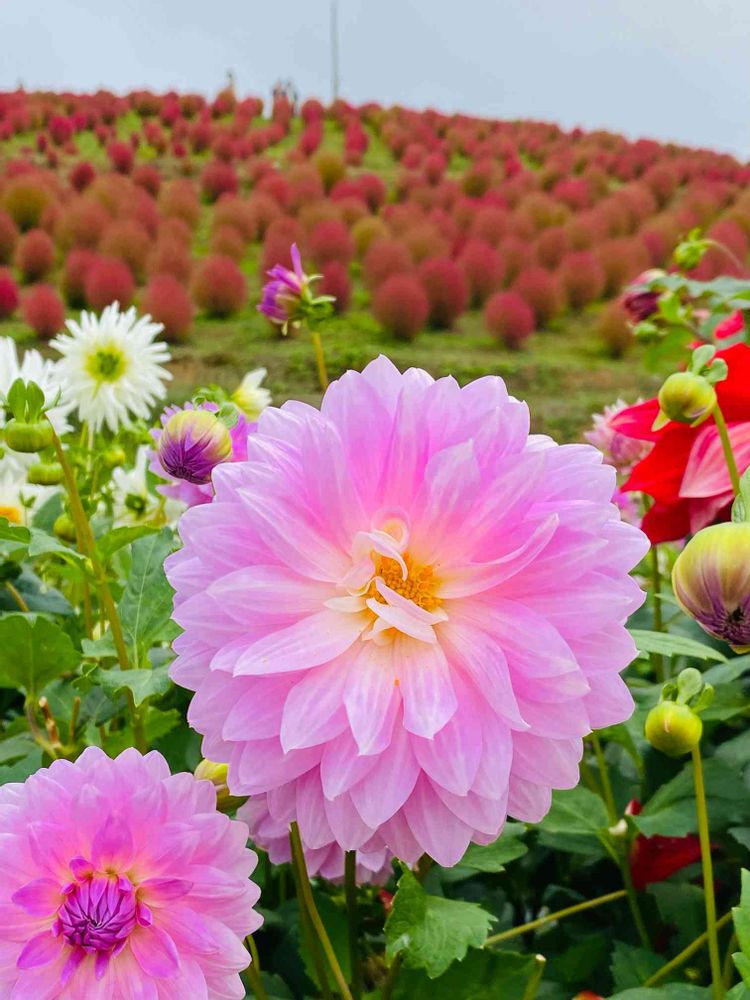 ダリアのピンクの美しさとフワフワ💜コキアが圧巻で思わず、おお!と声が出ました😆