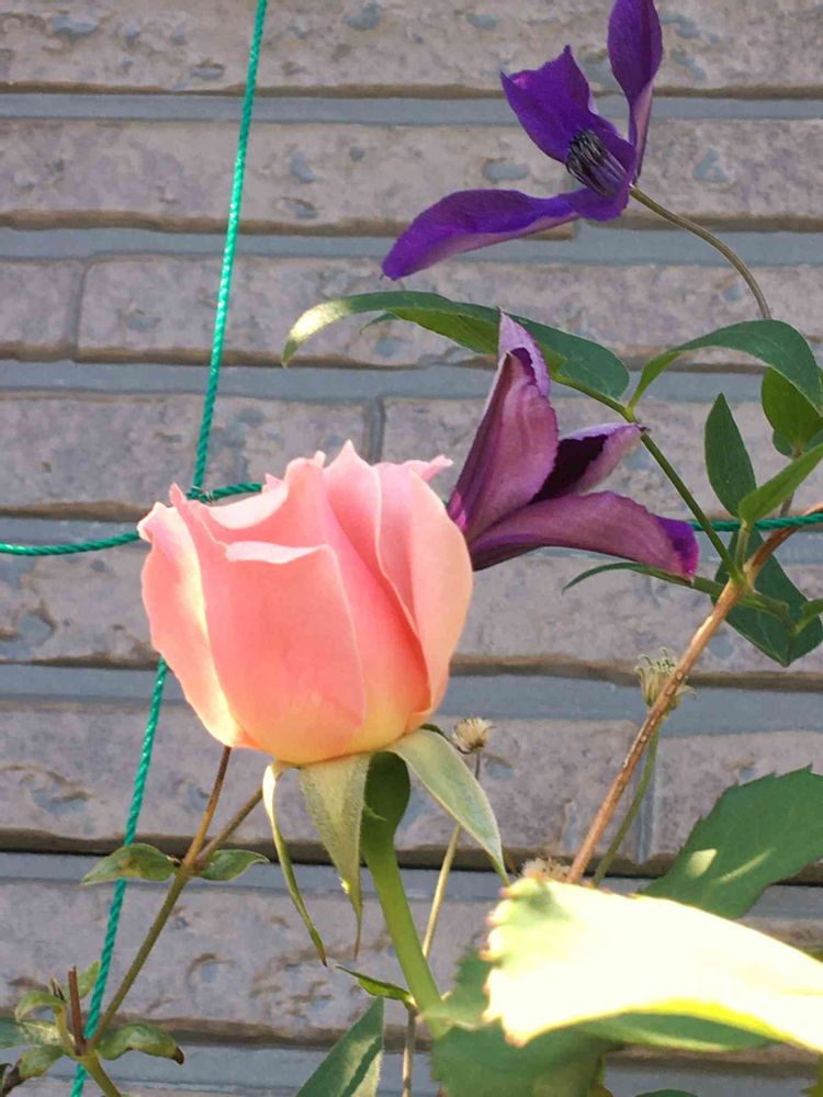 一番の決め手は、つるバラ、二番目に香り、三番目に色でした。あまり日が当たらないので、成長は遅くなるようです。3年後を期待して、フェンスと天空のトンネルを作りました。