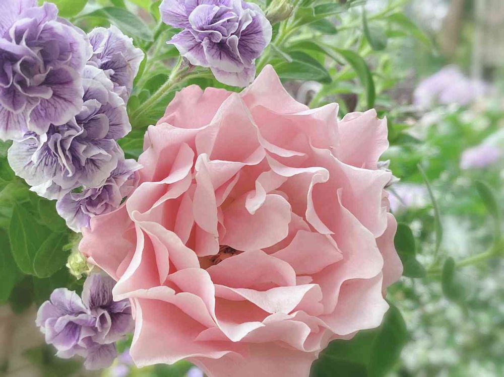 波打つような柔らかな花びらのダフネ🌹さん💓とペチュニア💜さんのコラボ💕