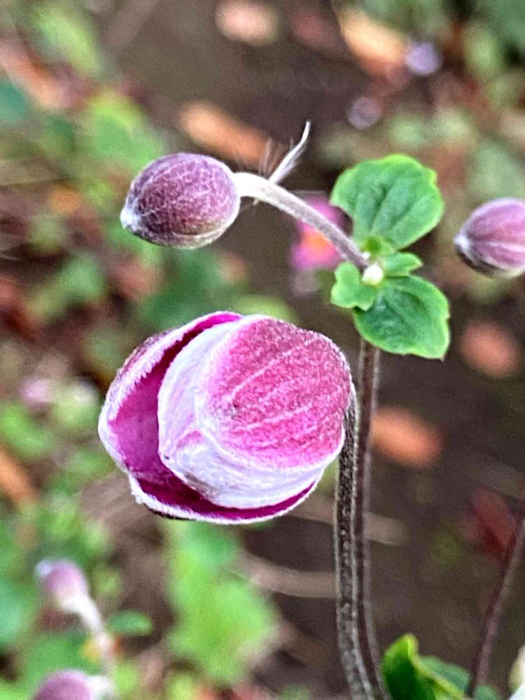 ぷっぷくの秋明菊さんの蕾さんですね😊。出来ることなら、この咲き始めから、ずーと見ていたいような⁉です😊