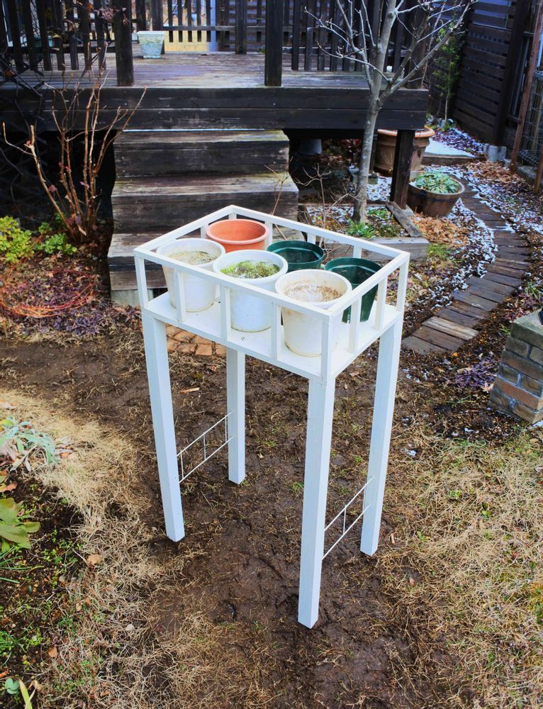 5号のプラ鉢6個置けるよう作ってありますけど重さに耐えられるかも怪しいかも(゜_゜)