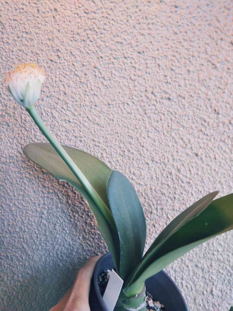 隅の方に追いやっていて、つい存在を忘れてしまうハエマンサス、マユハケオモト。通年屋外管理、🌀台風でも外💦