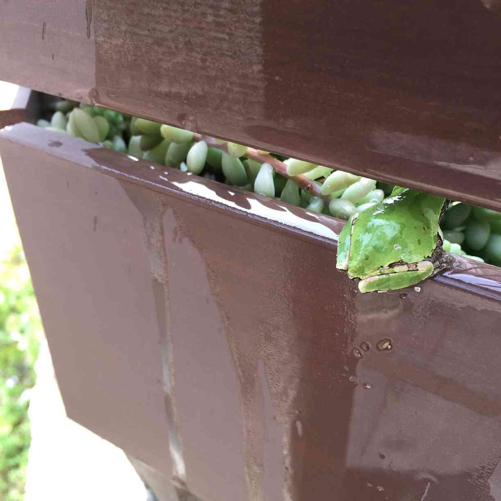 さん 毎年、ビアホップの中に住み着いている常連カエルさんがきます。水あげるとでてきます。