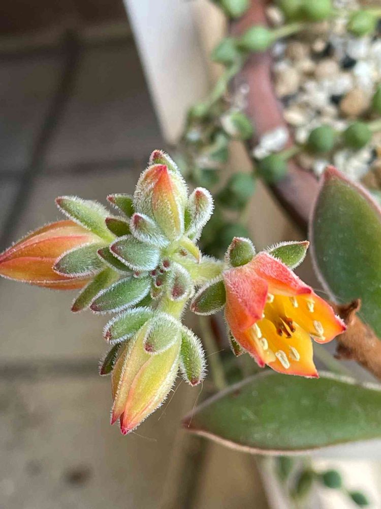 多肉のお花は、本体の栄養を取ってしまうので、消毒したハサミでカットして、乾いた花瓶に挿しておくと、わりと長く楽しめます🤗