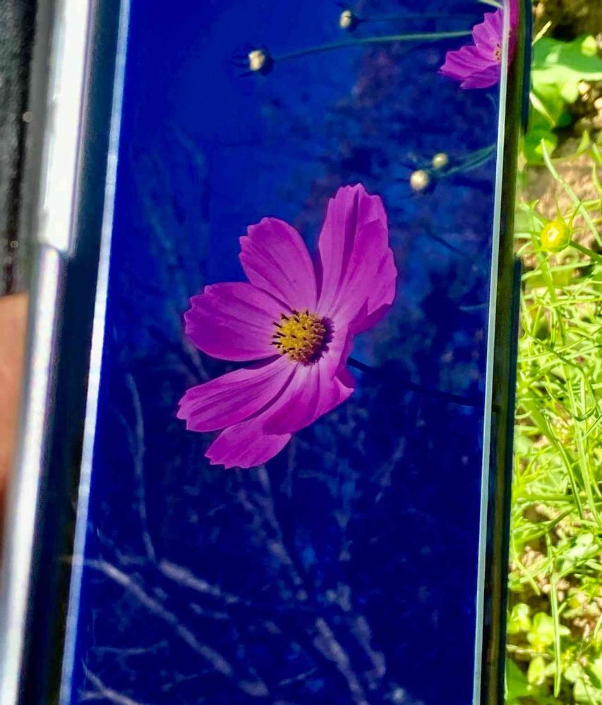 友のiPhoneに、鏡のように秋桜を映してもらい、その画面を撮ったpicです😄