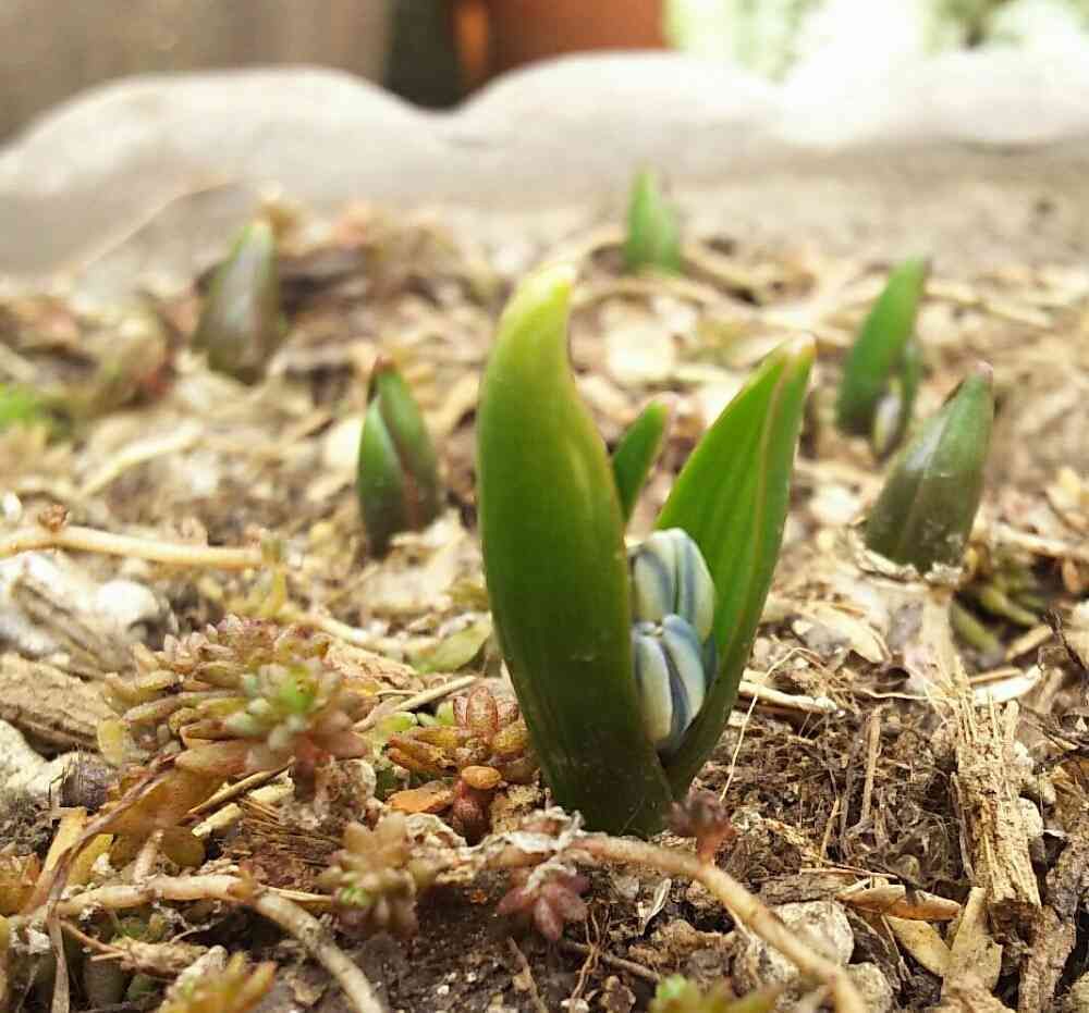 球根って、芽が出るまで、蕾が顔出すまで、花が咲くまで、と何段階もワクワク楽しめるね。ちょっとじれったいけど(笑)