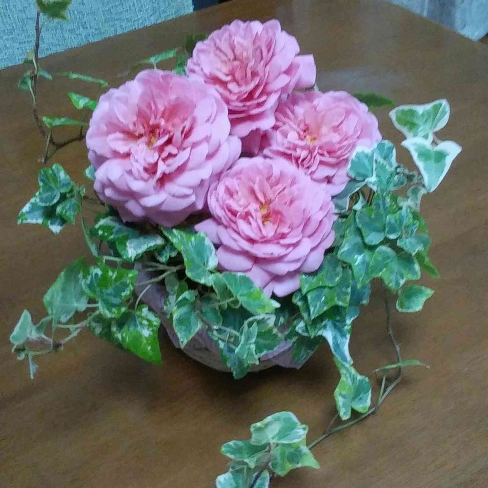 アイビーとピンクのバラがとっても素敵です✨😊✨👏