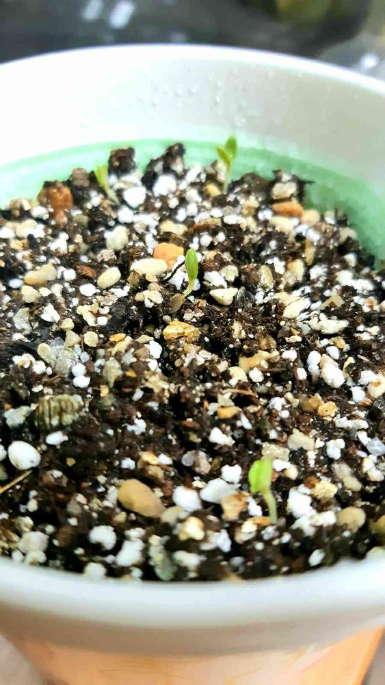 10個まいた種のうち、4個が発芽したようです🌱明日は双葉が開くかなぁ✨