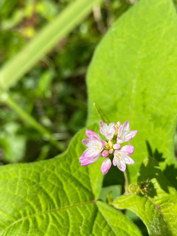 花はそっくりですが、ミゾソバは別名ウシノヒタイ…ウシノヒタイというより、牛の顔🐮…のような葉の形です。