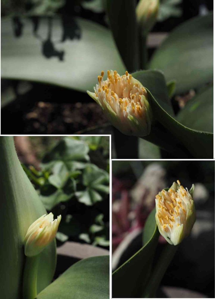 マユハケオモトって開いた本に似た形状なんですが、ページ(葉っぱです)をめくるとぺっちゃんこの花が格納されていて「何これ?押し花なの!栞なの!」という可愛さなのです