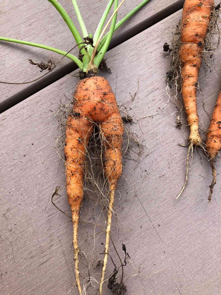 ミニ人参収穫したら脚が生えてました😂