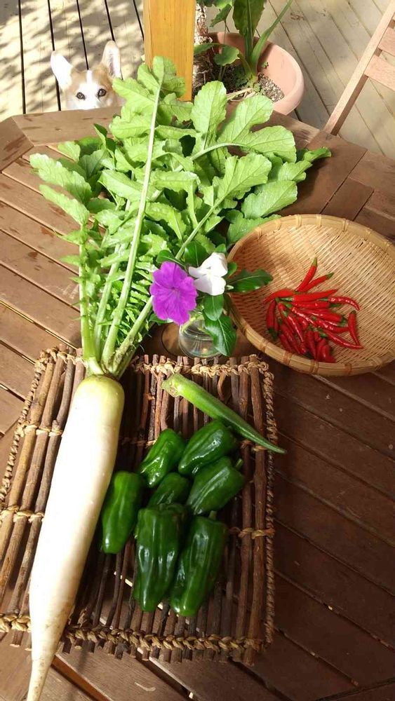 ピーマン、オクラ、それから大根と、トウガラシ😊💞