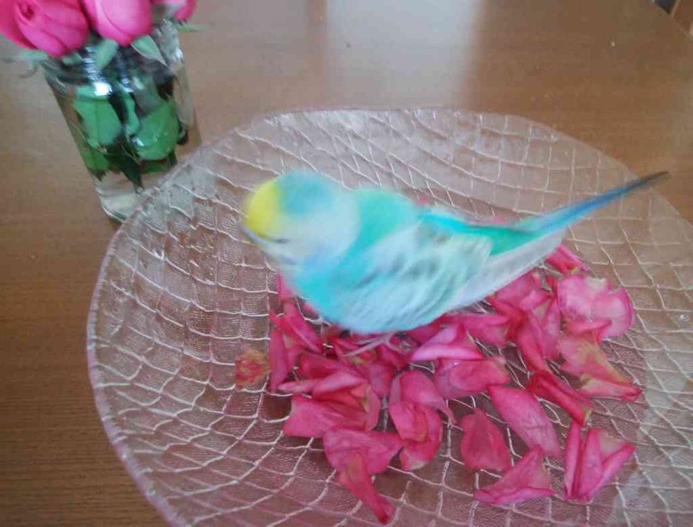 インコもバラ風呂!?🌹✨🐦