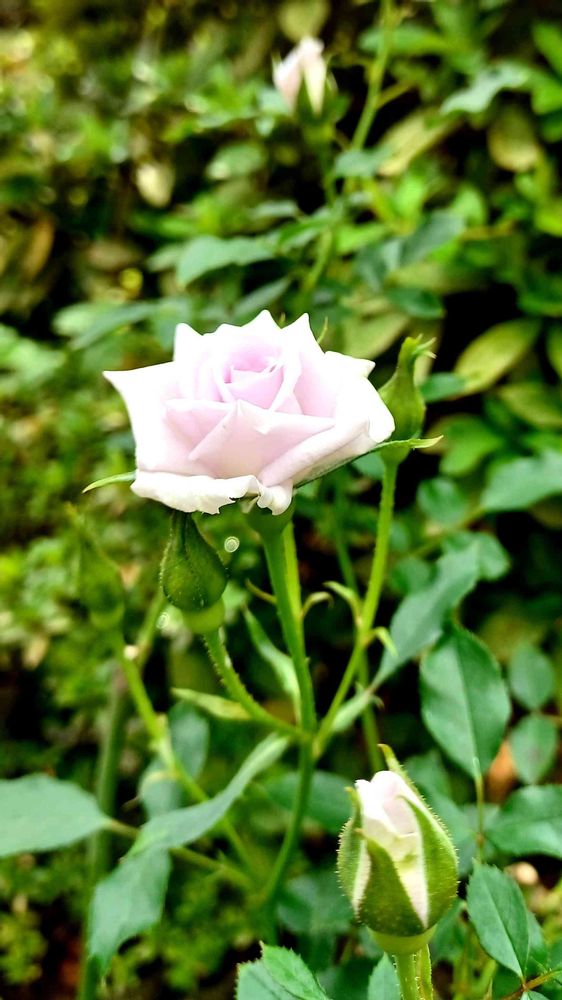 おはようございます☀️🙋……☝️ブルーバリュー咲き始めました🌹~一昨年の秋に大苗で購入しましたが花付きが悪かったので冬剪定で強めに✂️…今回が一番蕾を持ってます🙄夏の雨で土が重くなってたので度々エアーレーションしてたのが良かったみたいです😊酸素……息抜き必要ですね~😉~良い週末をお過ごし下さい🙏