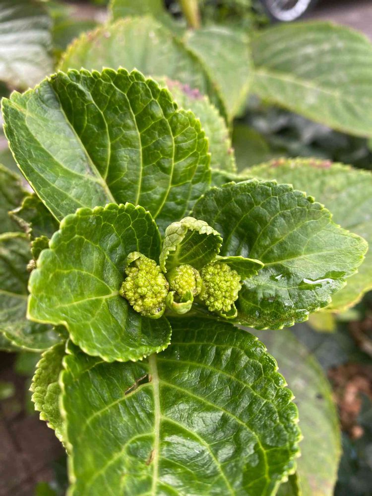 紫陽花の葉っぱがうどん粉病になってたから観察してたら、また花芽がついてました💠💠💠