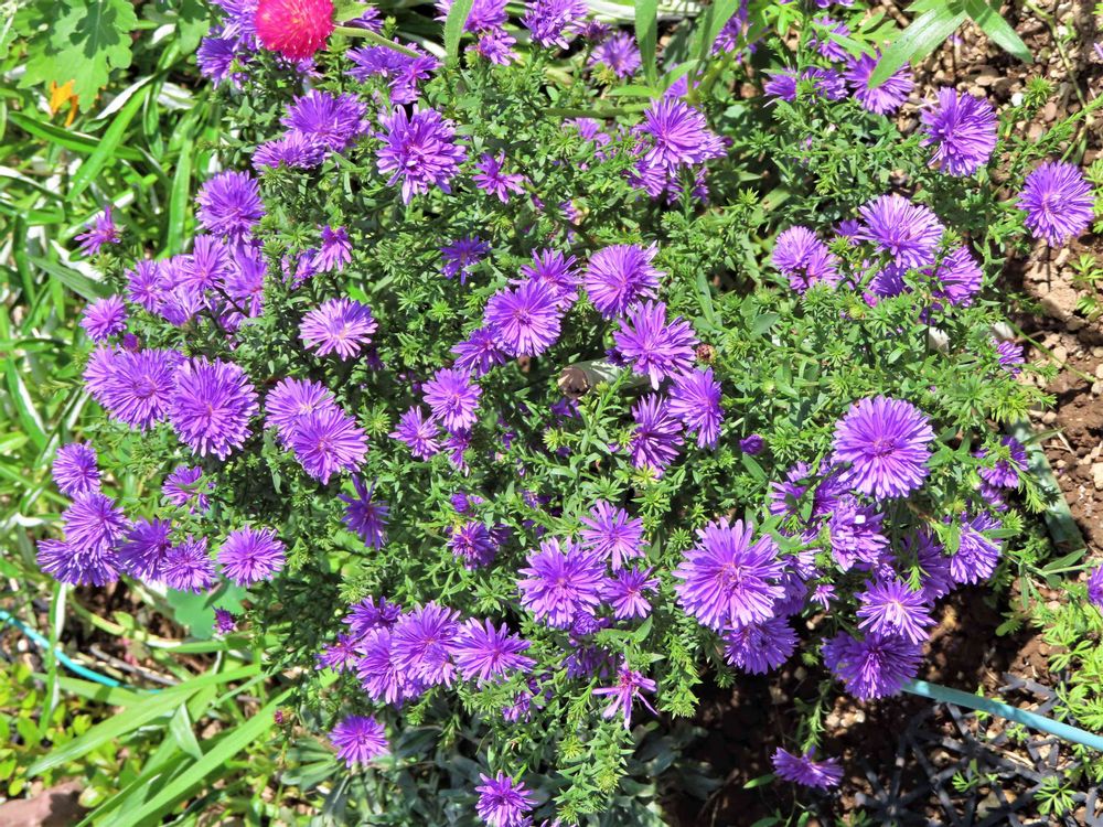 八重咲きの、宿根アスター(キク科シオン属)かなと思いますが、間違っていたら失礼、調べてみてください🙇♂️