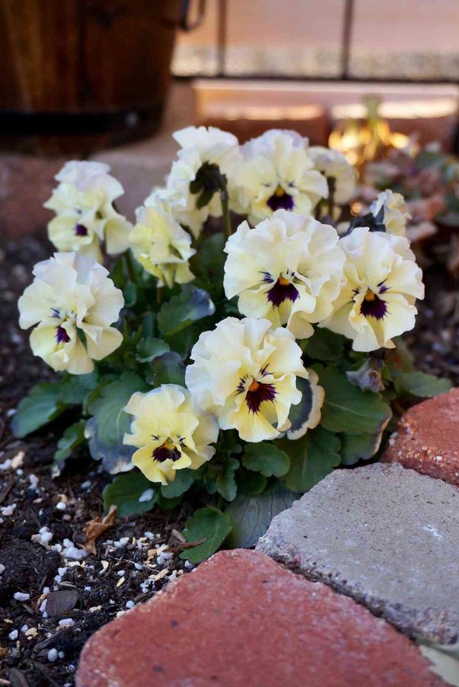 優しげなクリームイエローのパンジー、可愛いねっ💛