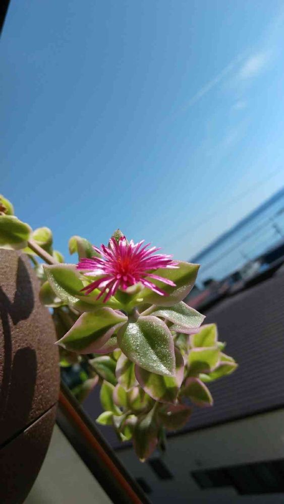 空と海の背景にピンクのお花がかわいいです(*≧з≦)