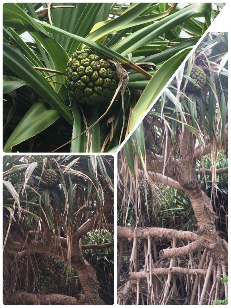 アダンは「阿檀」と書き、タコノキ科タコノキ属の常緑小高木。亜熱帯から熱帯地域の海岸近くに生息し、成長すると茎から木根が地面に伸びて支柱根となり、風で倒れないように体を支えている。ちなみにパイナップルはパイナップル科アナナス属の多年草であり、アダンは「木」、パイナップルは「草」として分類されている。つまり、パイナップルとは全く別物だそうです。