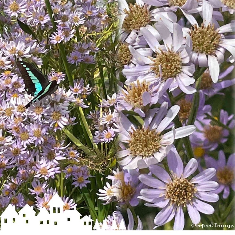 綺麗な紫苑とアオスジアゲハが