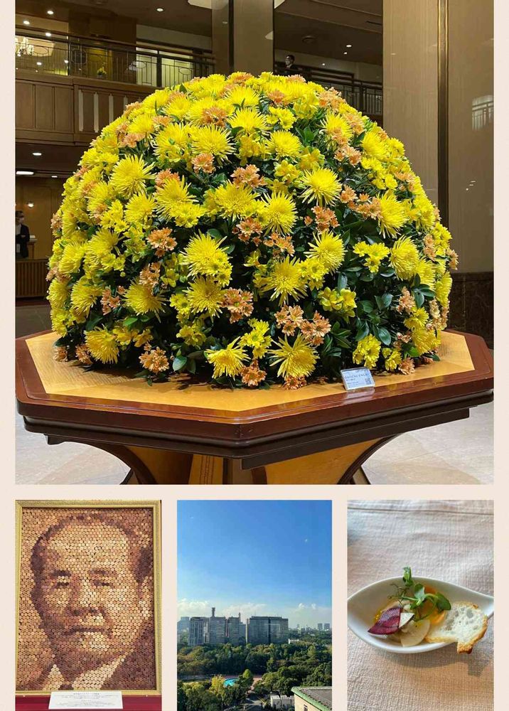↑ロビーには第一園芸さんの立派な菊のアレンジメントが巨大なお饅頭のように⁉️
