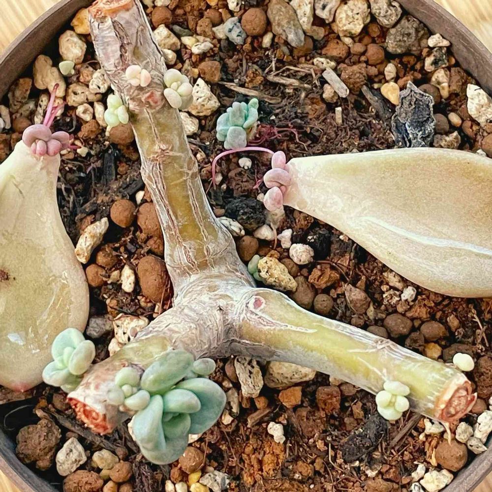 こちらも伸びちゃったので思い切って1個カットしたら沢山子株が( ・∇・)‼︎思い切って全部カットしたら赤ちゃん祭り♡