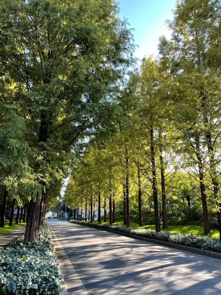 素敵な並木道ですね💓 道路に映る陽のあたり具合もいい感じです〜❣️