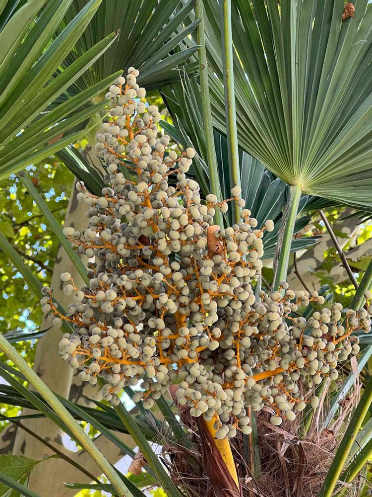図書館の庭でシュロの木を見上げたらたくさんのつぶつぶ発見!🔍