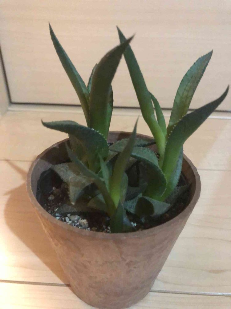 ハオルチア ベノーサ。徒長気味ですが安かったので、買っちゃいました。我が家にはお似合いです。