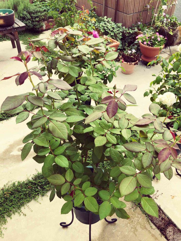 蕾が6個ついています。これぞ木立というくらい綺麗な樹形になりました。もう少しで他のバラ達と共演ができそうです。