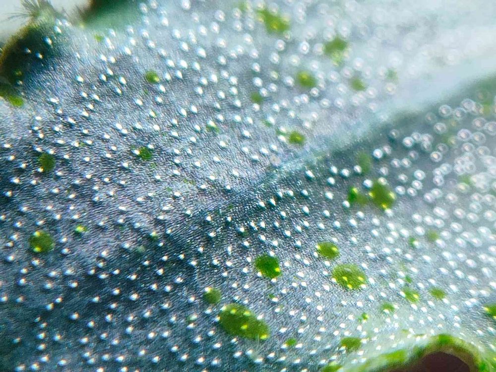 ブセファランドラの葉っぱのラメって拡大したらどう見えるんだろ?と思い、頑張って撮影したらグロ画像に😂