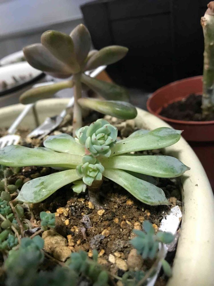 枯れ葉取ったり整頓してたらぽろぽろ葉が取れて、結局こんなにスッキリしてしまいました。笑。そして気付けば下にもまた芽が出てる〜♡