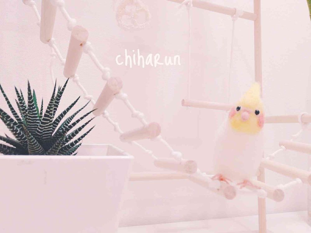 ママの作ったオカメインコがアスレチックで遊んでます🐤