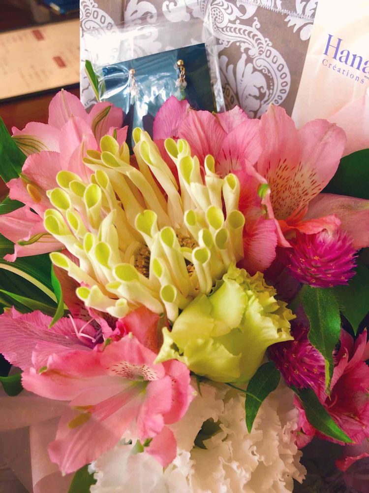 お友達からお誕生日にお花をいただきました💐パスタカルボナーラって美味しそうなお名前です🍝ありがとう♡