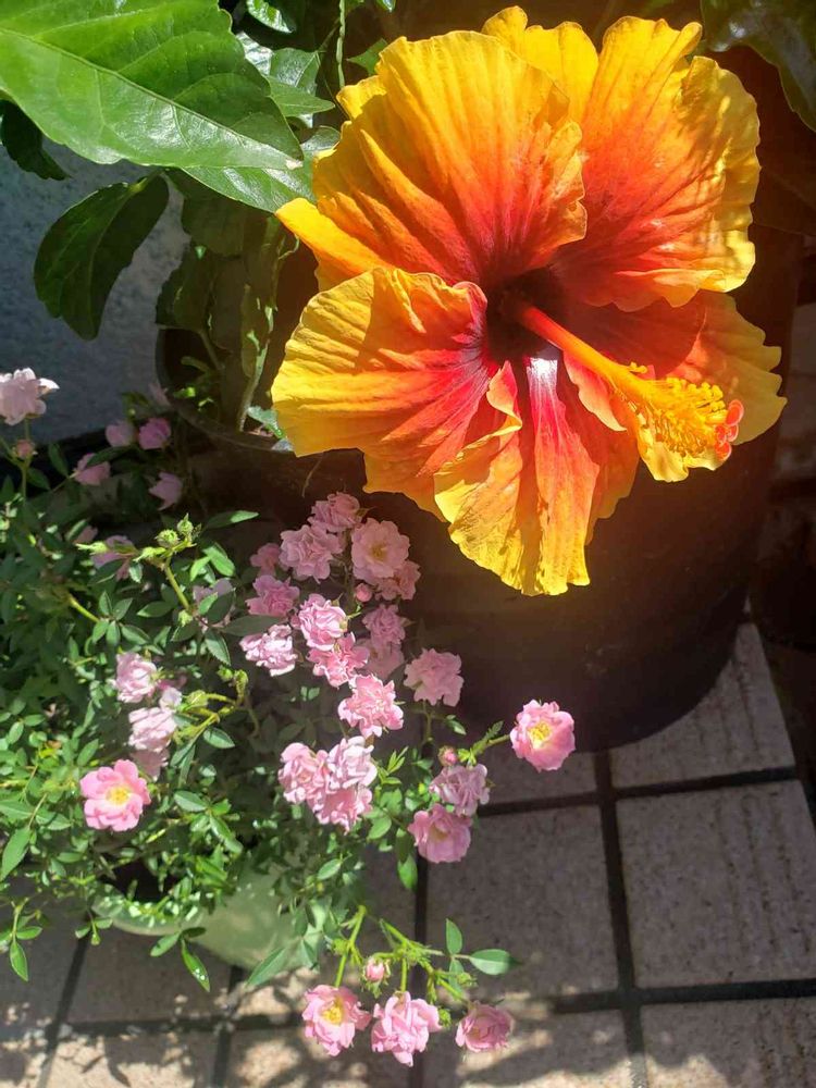 玄関,ミニバラ ほほえみ,ハイビスカス カルメンの投稿画像